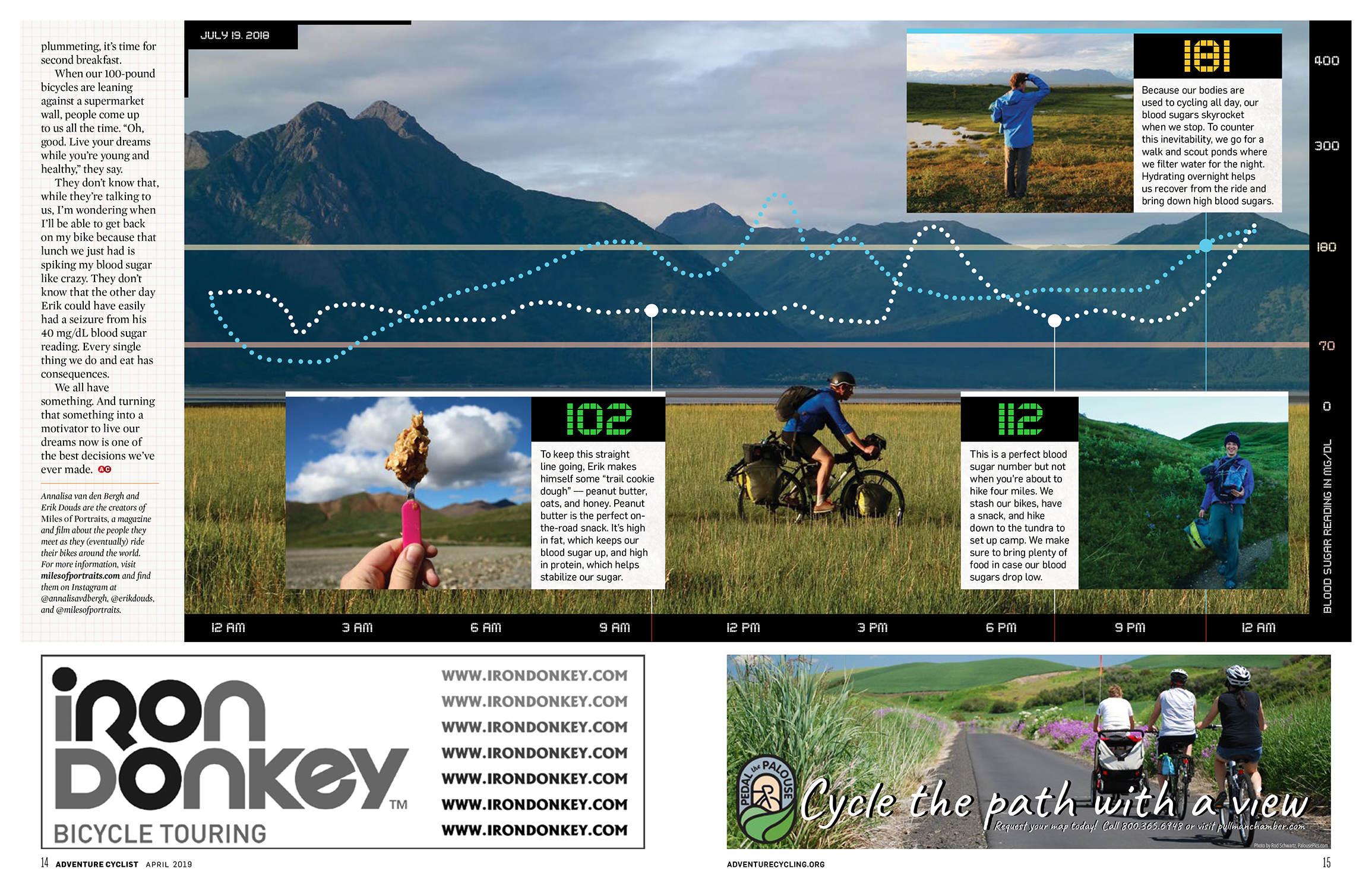 Which is why I’m thrilled that along with myself and my bicycle, this flowery pouch has landed on the cover of Adventure Cyclist Magazine. My article tells the story of our bicycle trip around Alaska through the lens of our Dexcom blood sugar graphs and illustrates the ways in which diabetes dictates our days.